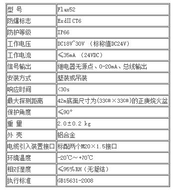 點型雙紅外火焰探測器(以下簡稱探測器)屬于防爆智能型火災探測設備,它運用了先進的多紅外傳感技術(MIR),使用具有窄帶濾波的不同波長的紅外傳感器,其中一只傳感器工作在反映火焰信息的中心波長,另外一只傳感器監視環境中的其他紅外輻射,結合火焰的閃爍特征,通過高性能的微處理器和先進的數學算法模型進行運算分析,使得只有符合火焰特征的輻射頻譜才會被確認為火警,而其他的干擾因素形成的假火警信號則會被排除。本探測器能夠對日光、閃電、電焊、人工光源、環境(人等)、熱輻射、電磁干擾、機械振動等干擾有很好的抑制,從而實現了對火焰信號的快速響應和準確識別。本探測器采用非接觸式探測,靈敏度現場可調,提供無源接點、標準電流輸出和總線接口與火災報警系統相連接。本探測器適用于無煙液體和氣體火災、產生煙的明火以及產生爆燃的場所。例如:航天工業、飛機庫、飛機修理場、化學工業、公路隧道、彈藥和爆炸品倉庫、油漆工廠、石油化工企業、制藥企業、發電站、印刷企業、易燃材料倉庫等可燃物含碳物質的其他場合。本探測器根據GB3836.1-2010《爆炸性氣體環境用電氣設備第1部分:通用要求》、GB3836.2-2010《爆炸性氣體環境用電氣設備第2部分:隔爆型“d”》的規定,制成隔爆型結構,其防爆標志:ExdⅡCT6。適用于工廠具有ⅡA、ⅡB、ⅡC級,引燃溫度組別為T1~T6組的1區、2區可燃性氣體或蒸氣與空氣形成的爆炸性混合物的場所。