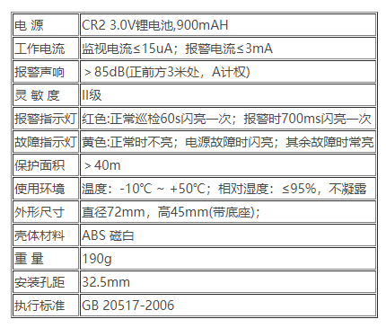 四.JTY-GF-DF90獨立式感煙火災(zāi)探測報警器技術(shù)參數(shù)