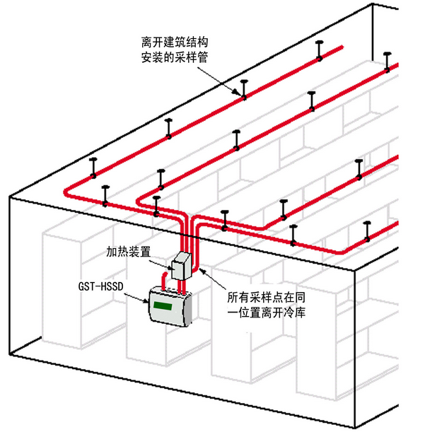 本指南用于幫助設計者針對冷庫這種特殊的環境條件設計-有效和-可靠的煙霧探測系統。我們總是敦促設計者使其設計的空氣采樣式煙霧探測系統達到或超過--消防規范、標準或規則的規定,但在這一應用中,要做到這一點相當困難。當設計不能滿足一般公認的參數指標時,設計者應該與用戶、保險公司或權威機構針對其中的難點進行討論。以下吸氣式感煙火災探測器以GST-HSSD(編輯注:此型號目前已經停產,實際可用其他型號替代)為例。
