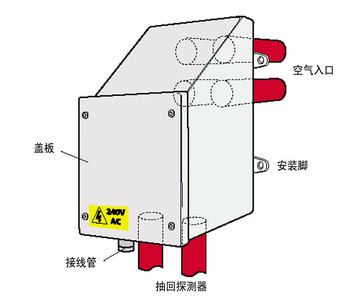 <!--[if !supportLists]-->§   <!--[endif]-->如果沒有維修空間,加熱器和GST空氣采樣式感煙火災探測報警器都可以安裝在建筑物墻上的避免氣候影響的防護箱內。