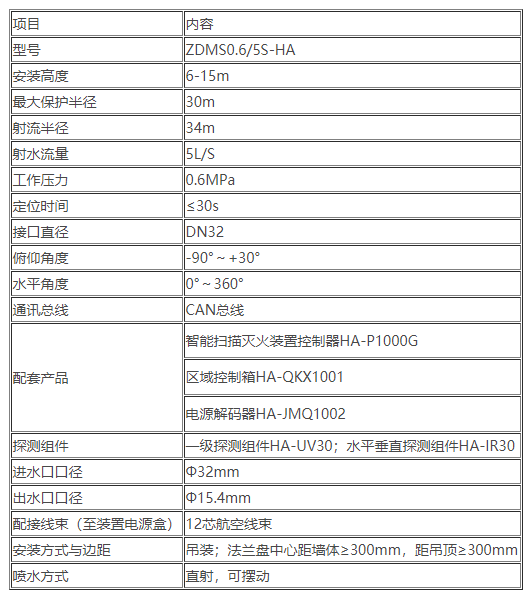 二、ZDMS0.6/5S-HA自動跟蹤定位射流滅火裝置 消防水炮技術參數