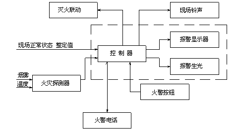 火災自動報警系統主要由觸發器件、火災報警裝置、以及聯動控制系統等組成。系統的工作原理如圖1所示: